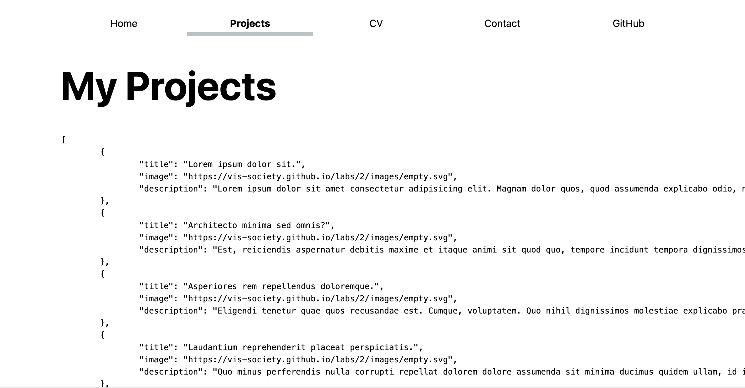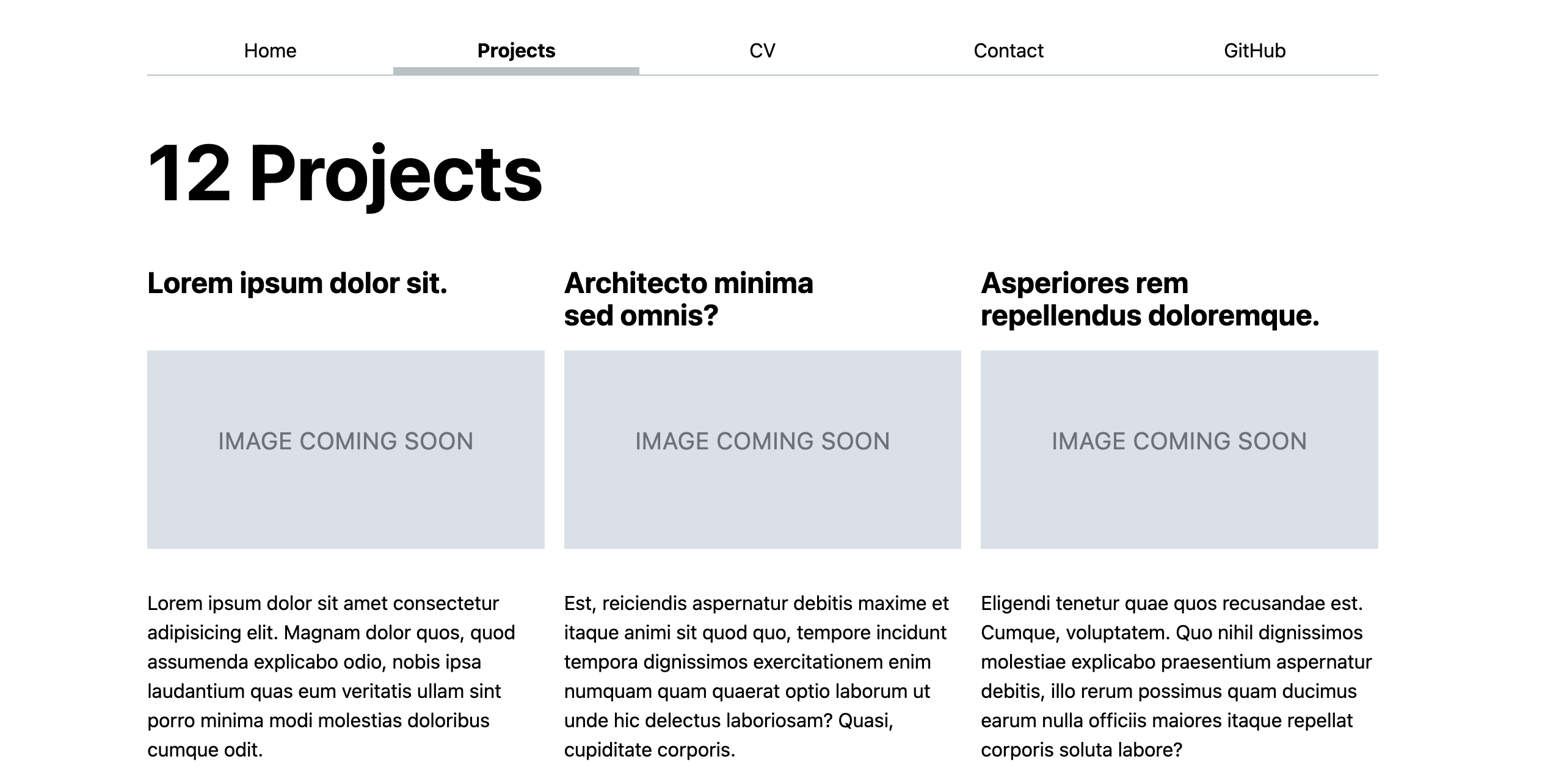 Unlike the previous labs, this lab will not involve dramatic changes to the end-user experience of our website. In terms of user-facing changes, we will only be adding a section of the 3 selected projects to the home page, displaying a count of projects, and creating a “What I’m Reading” section on the homepage.