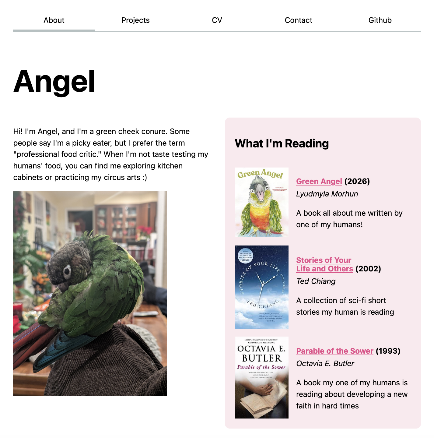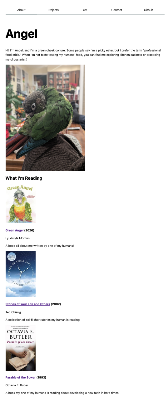 ReadingItemcomponent. - Add a new section to the homepage (with an appropriate heading, e.g. “What I’m Reading”).