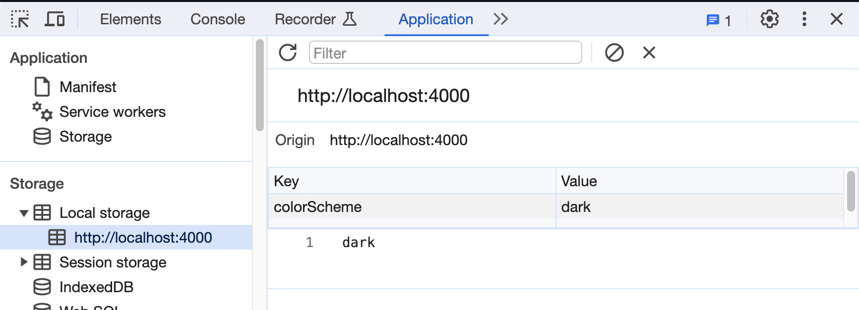 We’ll use the localStorage object, which allows us to save key-value pairs in the browser. Unlike session storage, data in localStorage persists even after the page is refreshed or the browser is closed.